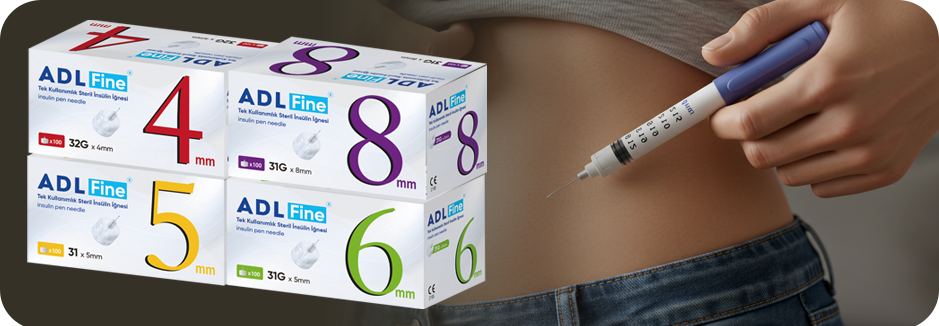 - Steril, apirojen,disposable,hipodermik tek kullanımlık insülin kalem iğneleri